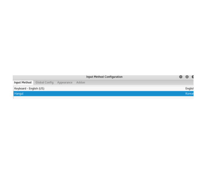 $ apt-get install -y fcitx-lib* $ apt-get install -y fcitx-hangul $ apt-get install -y fonts-nanum*입력기 설정